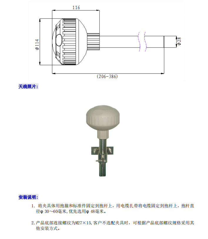 4、天線外罩采用耐候性良好,抗老化優質材料,適合長期野外環境下工作。